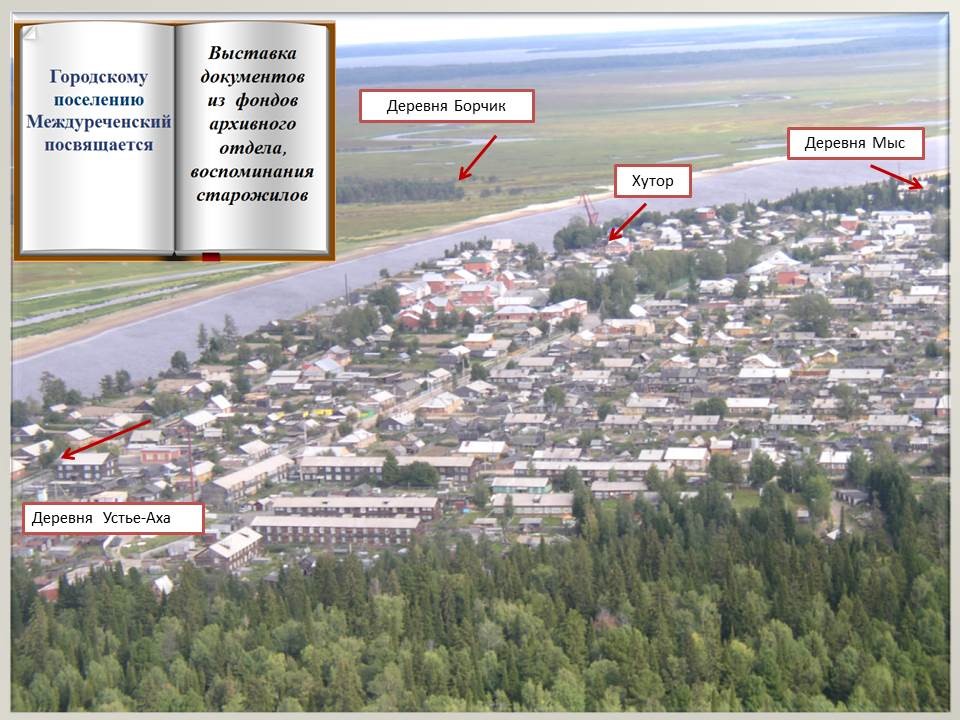 К 1964 году поселки разрослись и фактически слились в один населенный пункт, который люди сами стали называть Устье-Аха. 29 мая 1964 года поселок отнесен к категории рабочих поселков и выделен из административного подчинения Леушинского сельского Совета. Образован Устье-Аховский поселковый Совет депутатов трудящихся с центром в поселке Устье-Аха. 29 сентября того же года поселок Устье-Аха переименован в Междуреченский. Междуреченский расположился между реками, между бывшими мелкими поселениями, вобрав их в себя. Именно это географическое положение, которое можно назвать стратегическим, и предначертало судьбу молодого поселка, определив ему, спустя годы, стать райцентром.