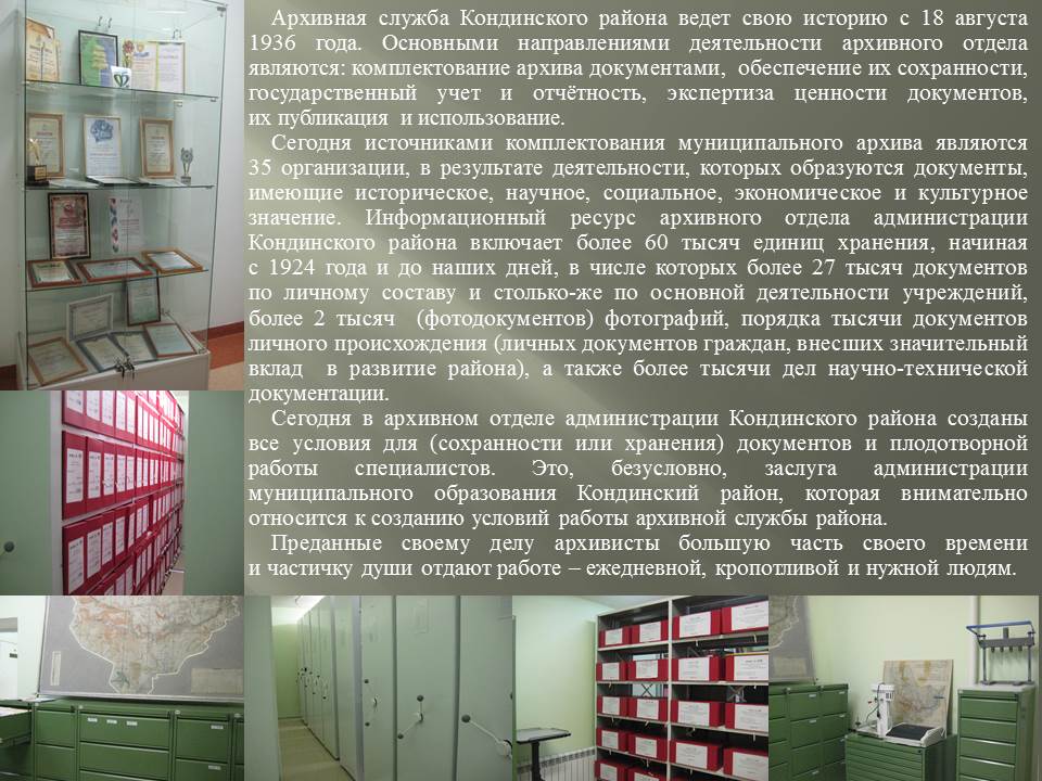 Кондинский районный архив был создан 18 августа 1936 года с одной штатной единицей – заведующий райархива.