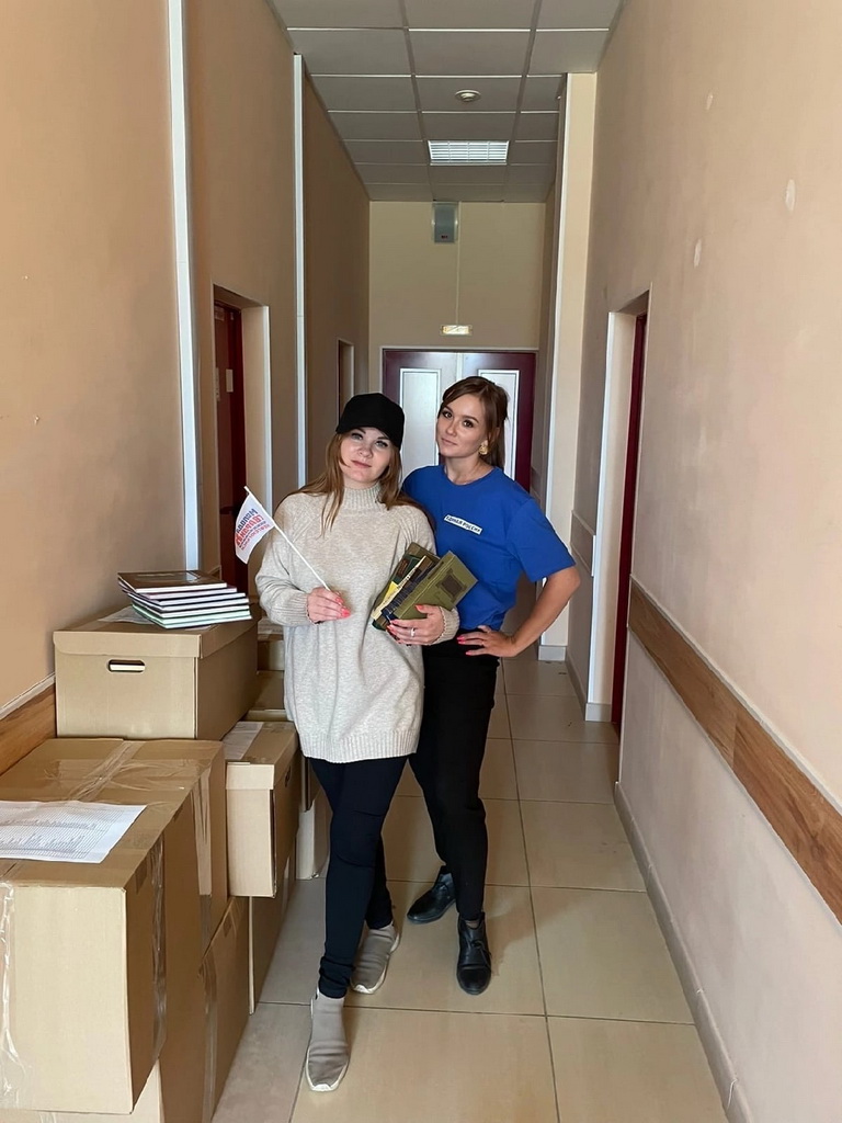 Члены Молодежного парламента при Думе Югры Светлана Старкова и Анастасия Стрельникова вместе с коллегами из Молодежной палаты Нефтеюганска, а также молодогвардейцами Алиной Манаповой и Ширазом Усмановым присоединились к сбору литературы для жителей Донбасса.