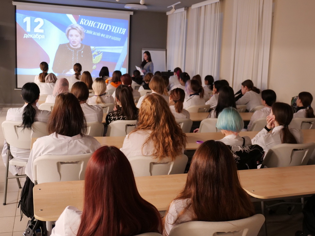 В День Конституции члены Молодежного парламента при Думе Югры Владислав Брылеев и Марк Бородатый совместно с коллегами из Молодежной палаты при Думе города Сургута провели встречу со студентами Института экономики,