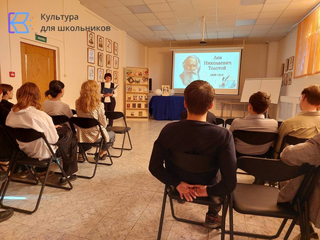 14 сентября в рамках культурно-образовательного проекта «Культура для школьников» в библиотеке состоялась литературная гостиная, посвященная юбилею всемирно известного писателя, выдающегося мыслителя, педагога Льва Николаевича Толстого.