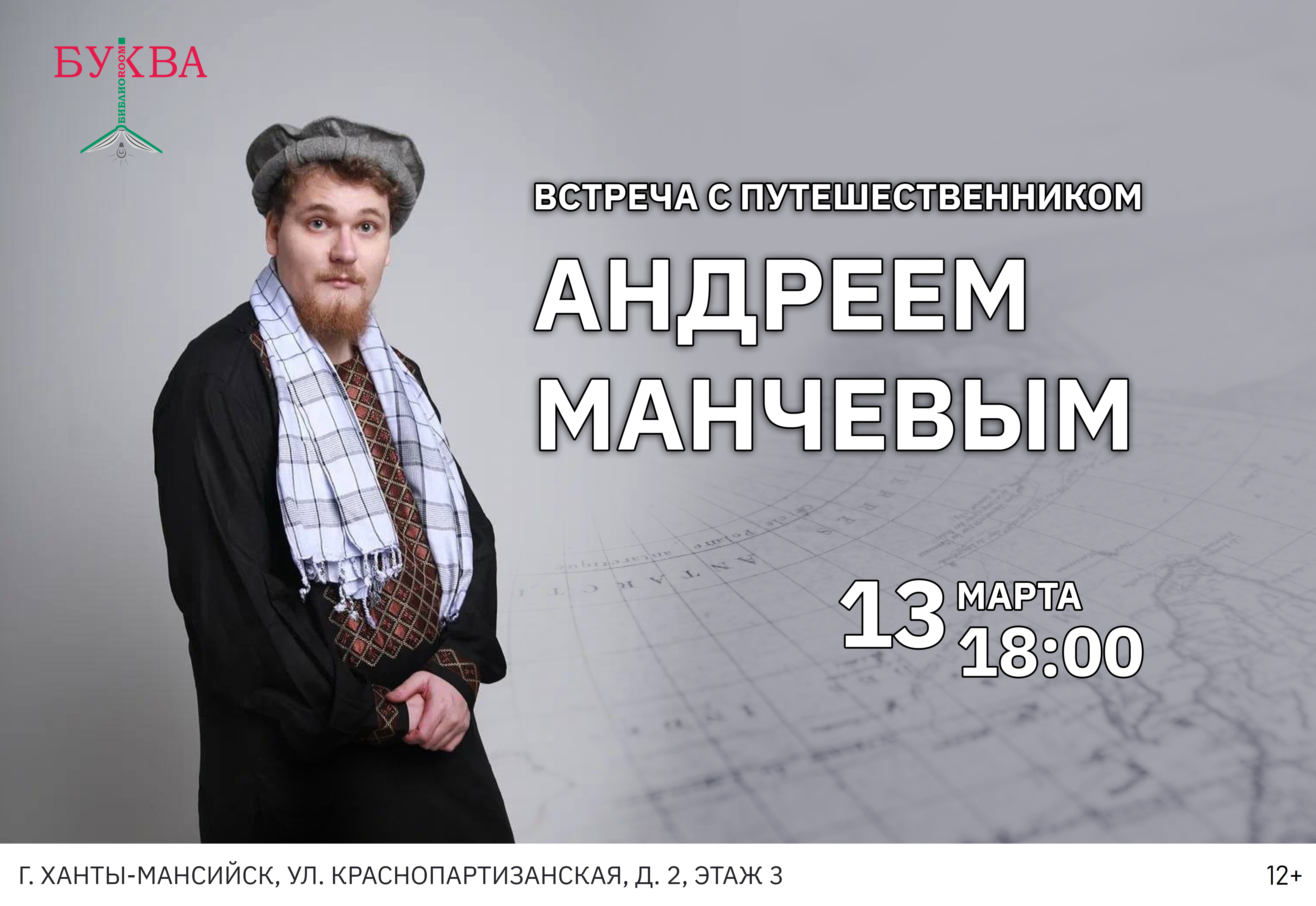 13 марта в библиотеке №6 в рамках большого лекционного тура по городам Урала выступит Андрей Манчев — известный путешественник из Москвы.