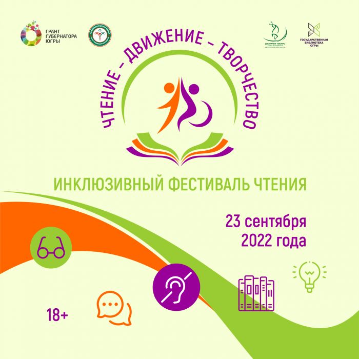 23 сентября в Ханты-Мансийске пройдет Инклюзивный фестиваль чтения «Чтение – Движение – Творчество», который пройдет с 11.00 до 17:30 в нашей библиотеке по улице Мира.