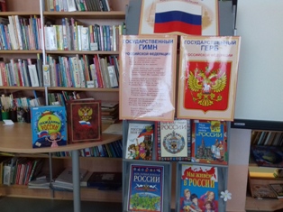 Специально к мероприятию оформлена книжная выставка «Гордо реет флаг российский».