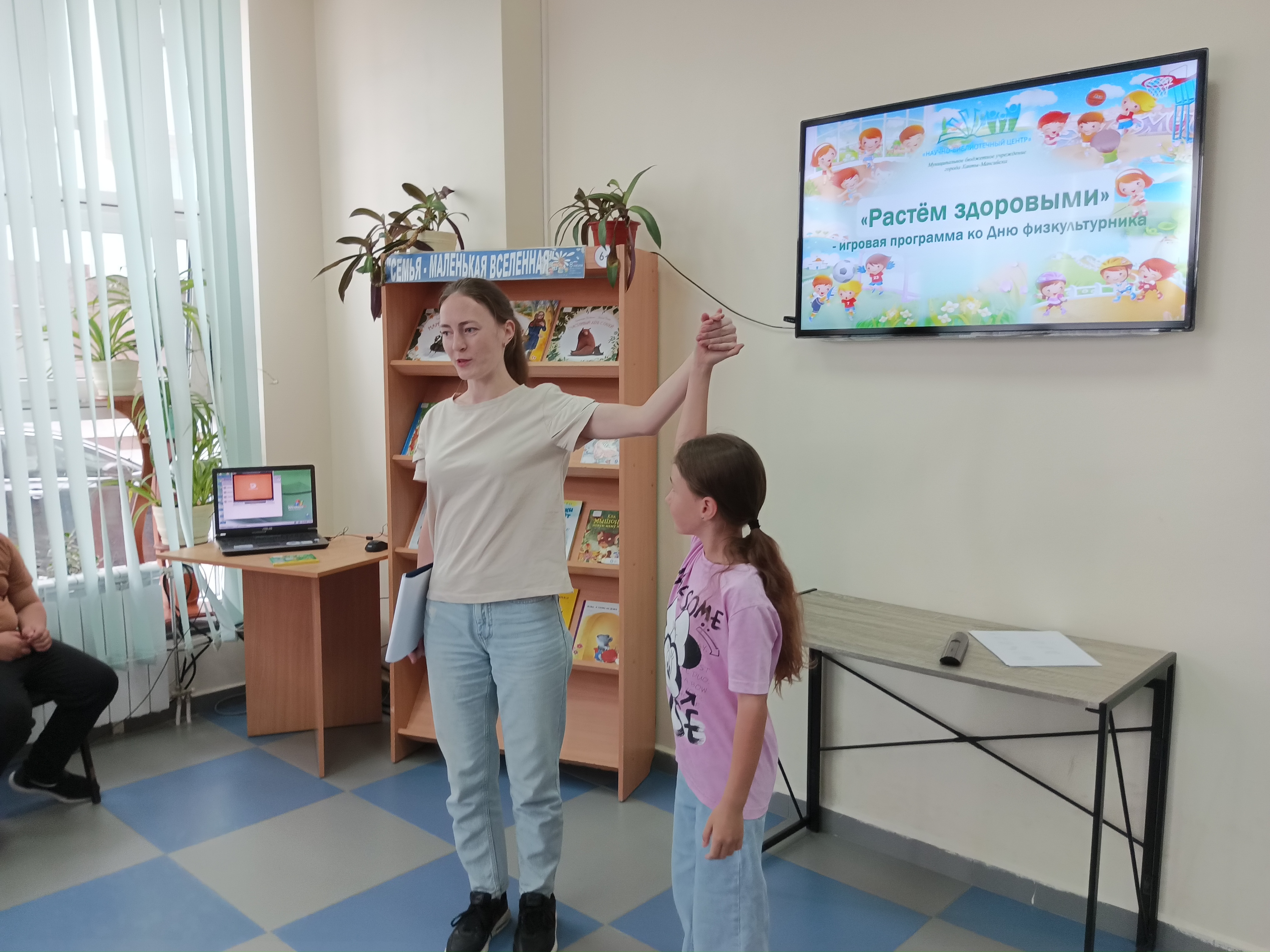 Игровая программа «Растём здоровыми», посвященная Дню физкультурника, прошла в детской библиотеке для ребят из лагеря дневного пребывания Ханты-Мансийского центра помощи семье и детям.