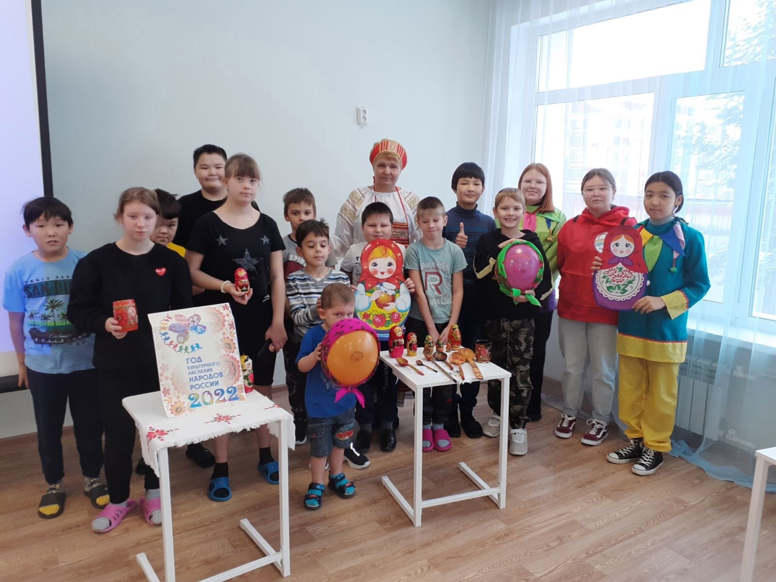 В рамках Года культурного наследия народов России и проекта «Мы рядом, мы вместе» волонтёры клуба «Радуга» и сотрудник Детской библиотеки провели праздник «Матрёшки и деревянные ложки».