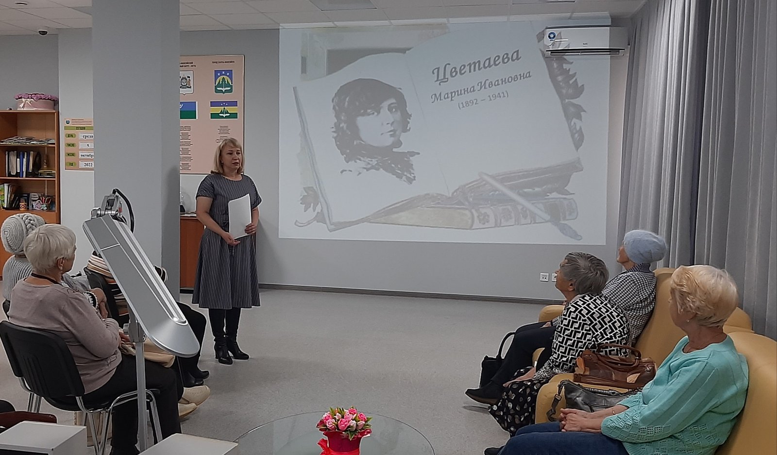 Сотрудники библиотеки №4 провели поэтический вечер «Последний дневник» в Ханты-Мансийском комплексном центре социального обслуживания населения. Его участники также узнали о непростой биографии Марины Цветаевой, которая лишь после смерти стала одним из самых читаемых и цитируемых авторов, с удовольствием прослушали любовную лирику и популярные романсы на цветаевские стихи.