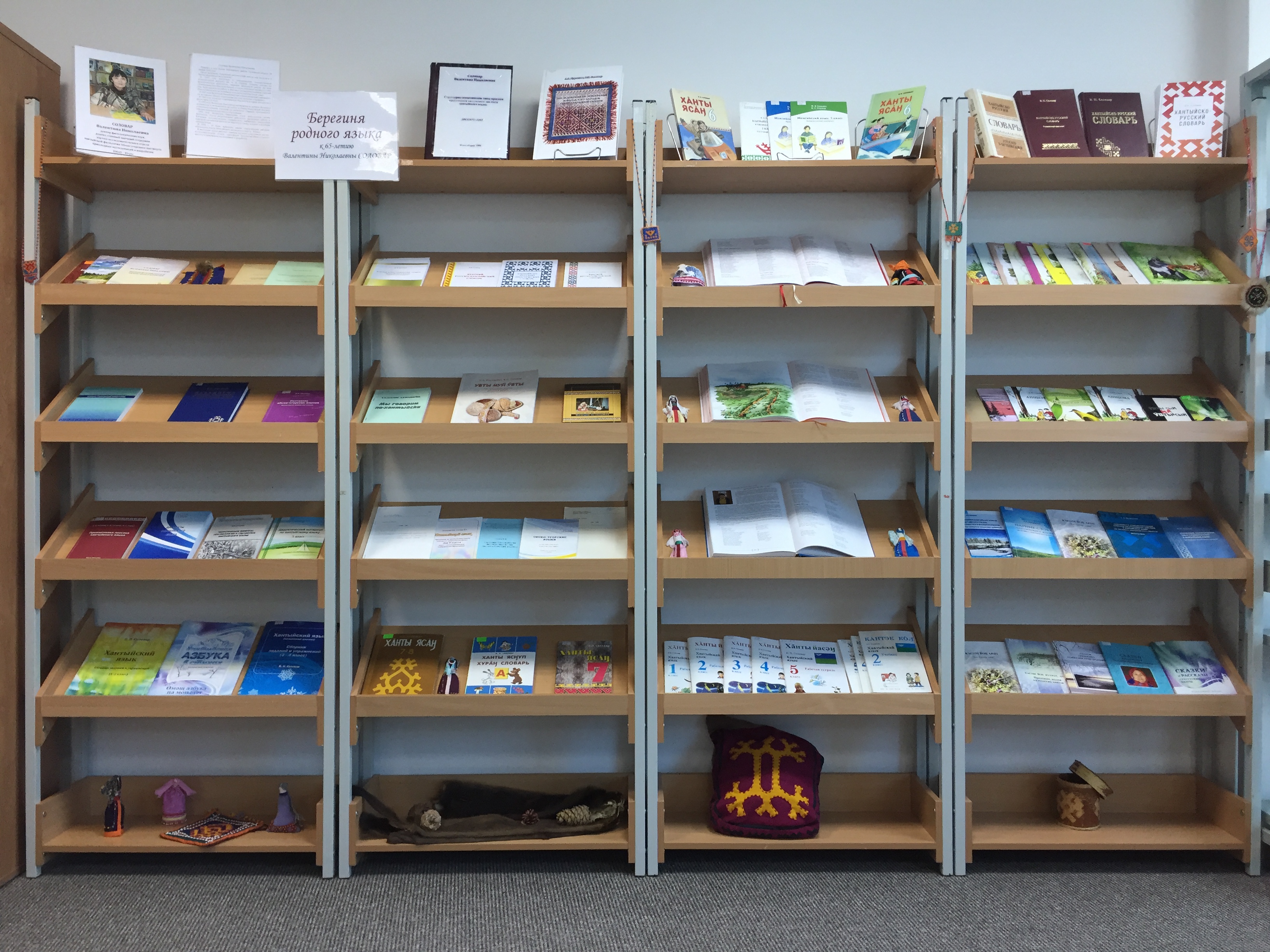 30 января 2023 года в библиотеке Обско-угорского института открылась выставка, посвященная 65-летию Валентины Николаевны Соловар – главного научного сотрудника научно-исследовательского отдела хантыйской филологии Обско-угорского института прикладных исследований и разработок.