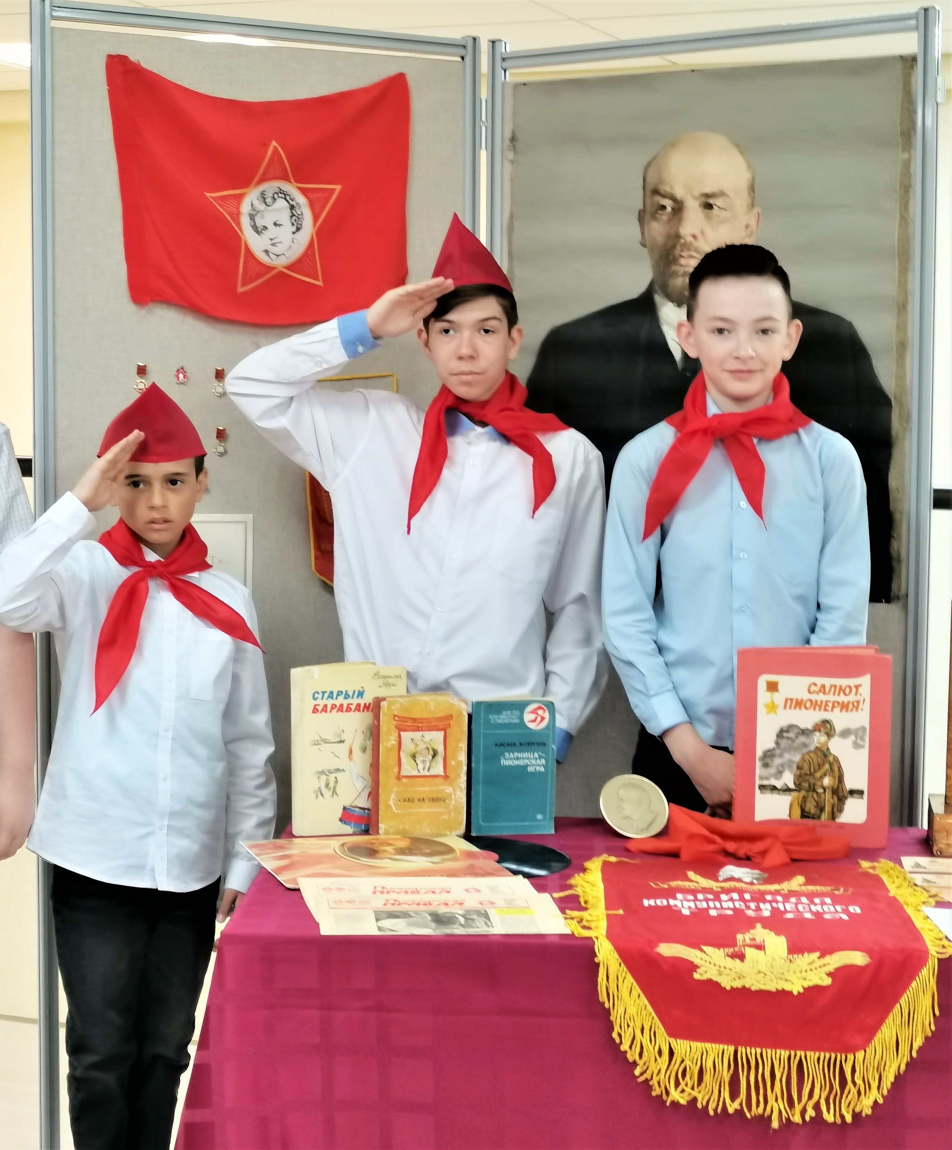Школьники увлеченно участвовали в диалоге с гостями, задавали много вопросов как о пионерах, так и о современных волонтерах. Не оставила ребят равнодушными и выставка пионерской атрибутики, представленная сотрудниками Этнокультурного центра.