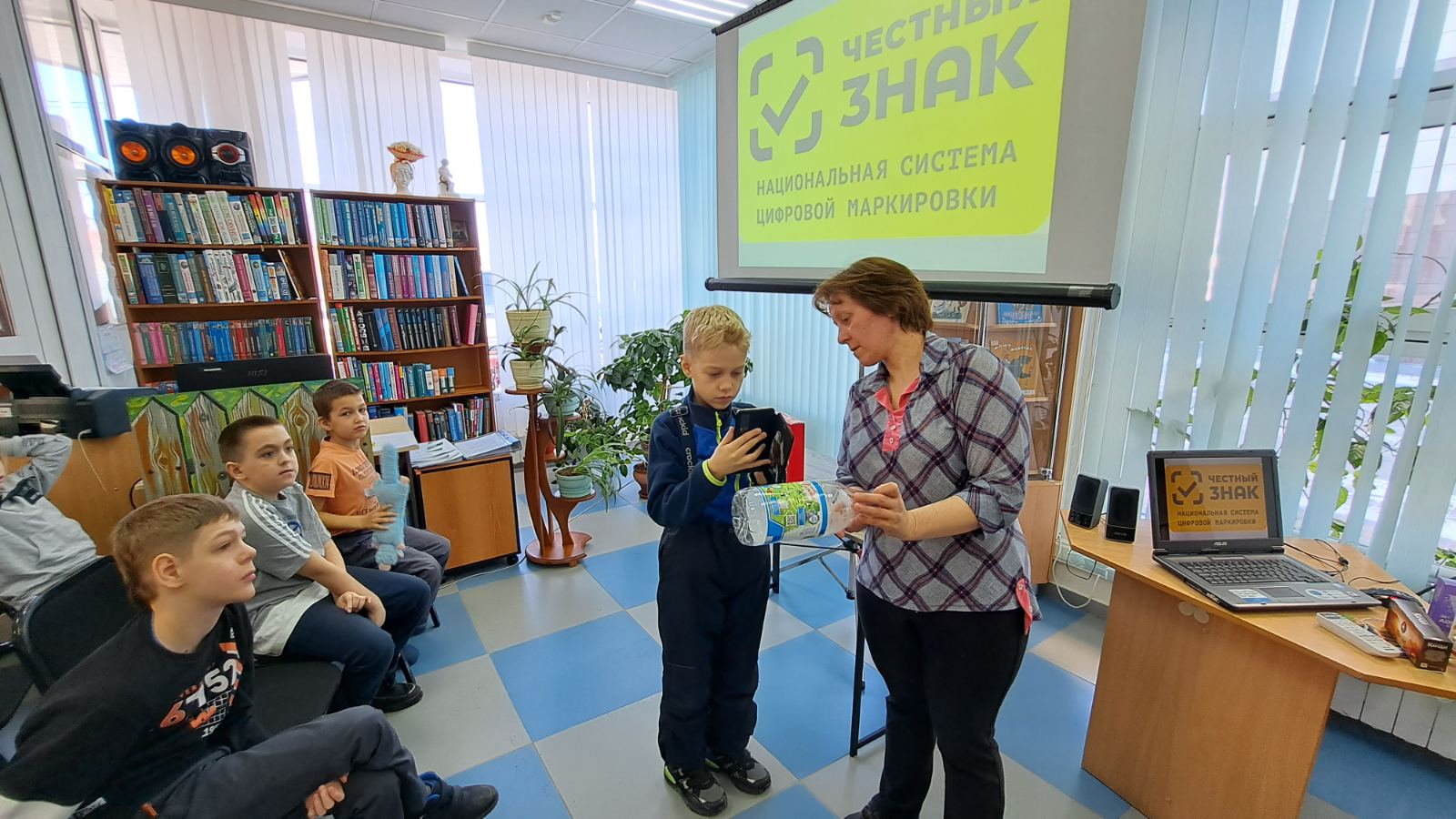 Ребятам рассказали, как грамотно выбрать товар, на что обращать внимание, правила возврата и обмена покупок. Юные гости приводили ситуации и примеры из своего опыта, изучали информацию на этикетках, определяя срок годности и дату изготовления. Они узнали, что обозначают штрих-коды и знаки на упаковках, этикетках, и как мобильное приложение «Честный знак» может считывать маркировку и определять, подвергается ли упаковка повторной переработке.