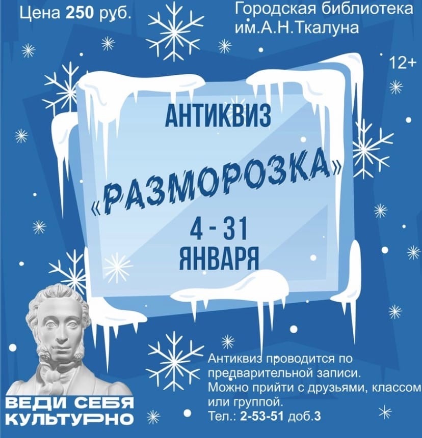 Приглашаем всех в Городскую библиотеку им. А.Н.Ткалуна на антиквиз "Разморозка"