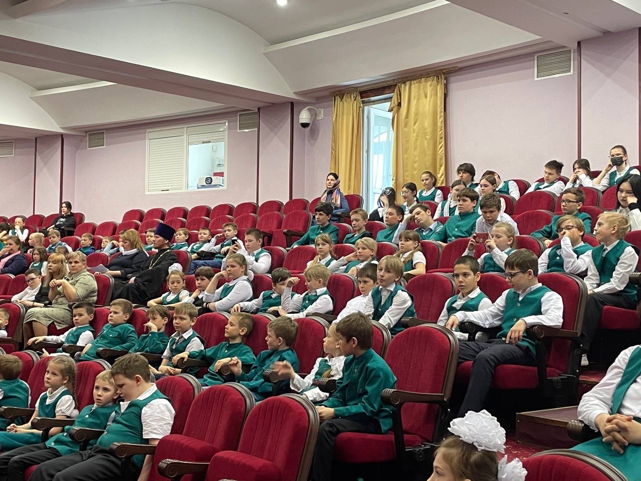 В начале мероприятия духовник гимназии иерей Евгений Набоков обратился к участникам и зрителям с приветственным словом.
