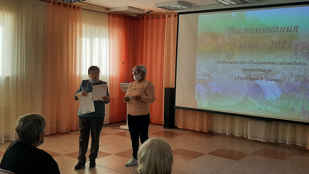 Занятие началось с презентации «Воспоминания о лете – 2021». Огородники похвастались удивительным урожаем помидоров, баклажанов, кукурузы, перцев, даже арбузов и винограда; делились впечатлениями от ежегодной выставки-ярмарки «Дары земли Югорской». Совет ветеранов города Югорска отметил участников выставки-ярмарки памятными дипломами и сертификатами. Еще на встрече обсуждался план работы любительского объединения в этот учебный год: темы лекций, даты проведения занятий, спикеры.