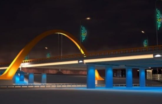Отметим, масштабный проект по изменению архитектурно-художественного освещения объекта стартовал осенью 2021 года. Стоимость нового облика транспортной развязки составляет около 21 миллиона рублей – это средства меценатов. Иллюминацию устанавливают на арке, опорах и боковых линиях моста. Всего на декорацию объекта потребуется более восьмисот энергосберегающих устройств. Первую партию светильников подрядчик смонтировал еще в прошлом году, они уже работают.