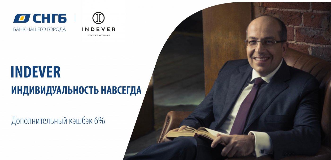 При оплате покупок в INDEVER картами Сургутнефтегазбанка Visa Infinite, Visa SIGNATURE, Visa Platinum PREMIUM начисляется кэшбэк 6%.