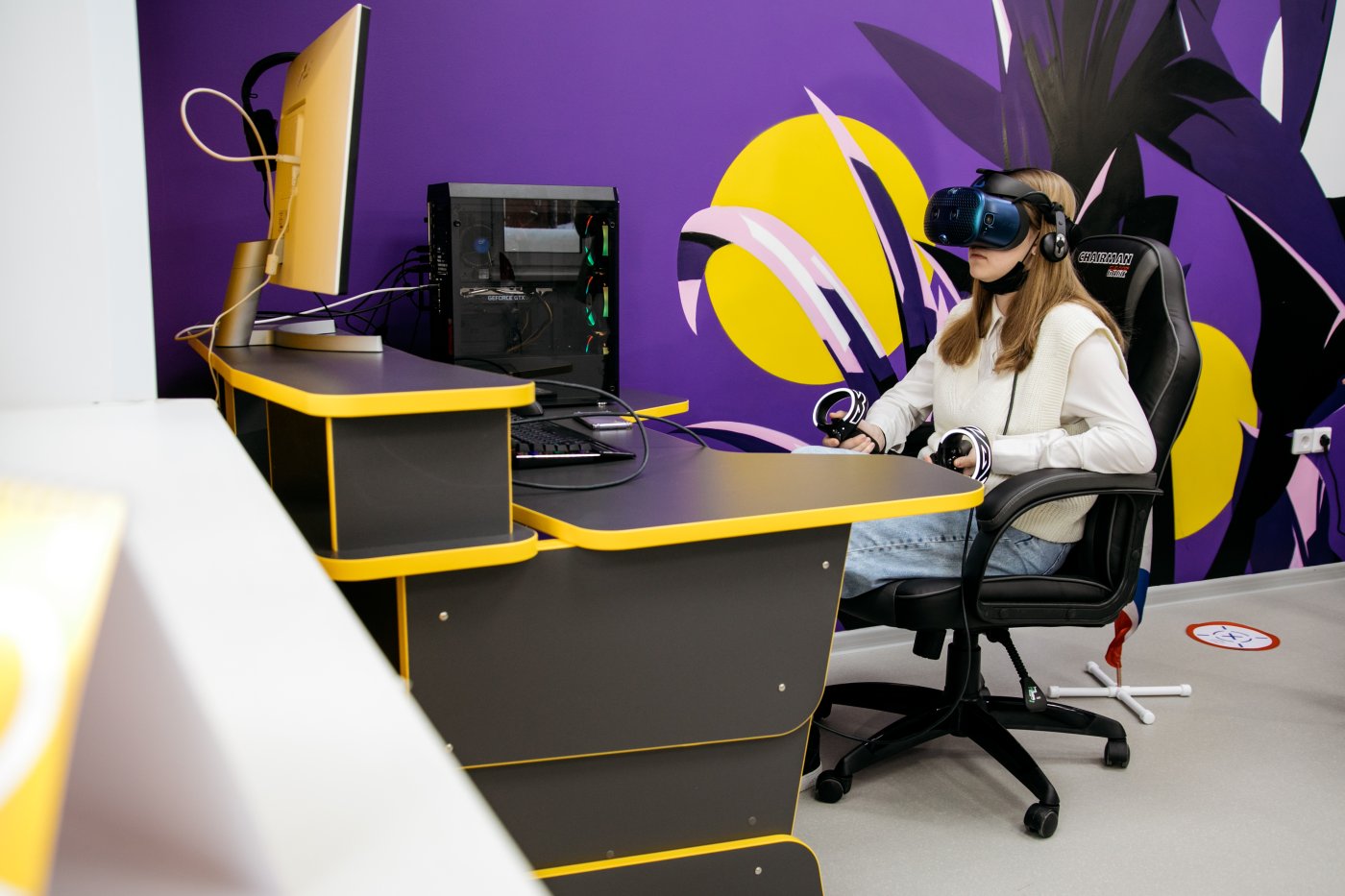 Еще 12 миллионов — это оснащение трех основных зон центра: коворкинг-зоны (с настольными играми, кинопроекторами, аэрохоккеем, настольным футболом), кибер-зона (с игровыми компьютерами, консолями, наушниками, VR гарнитурой) и зоны медиа, где находятся телевизоры, акустические системы, микрофоны, интерактивные доски, студийный свет, веб-камеры).