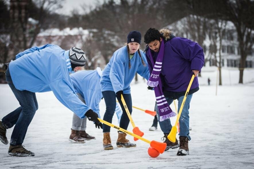 Например, Брумбол. Это игра на ледяном поле с участием двух команд из пяти полевых игроков и вратаря. Похожа на симбиоз хоккея с шайбой и флорбола. Её главные отличия: мяч вместо шайбы, метла вместо клюшки, обувь с цепкой резиновой подошвой вместо коньков.
