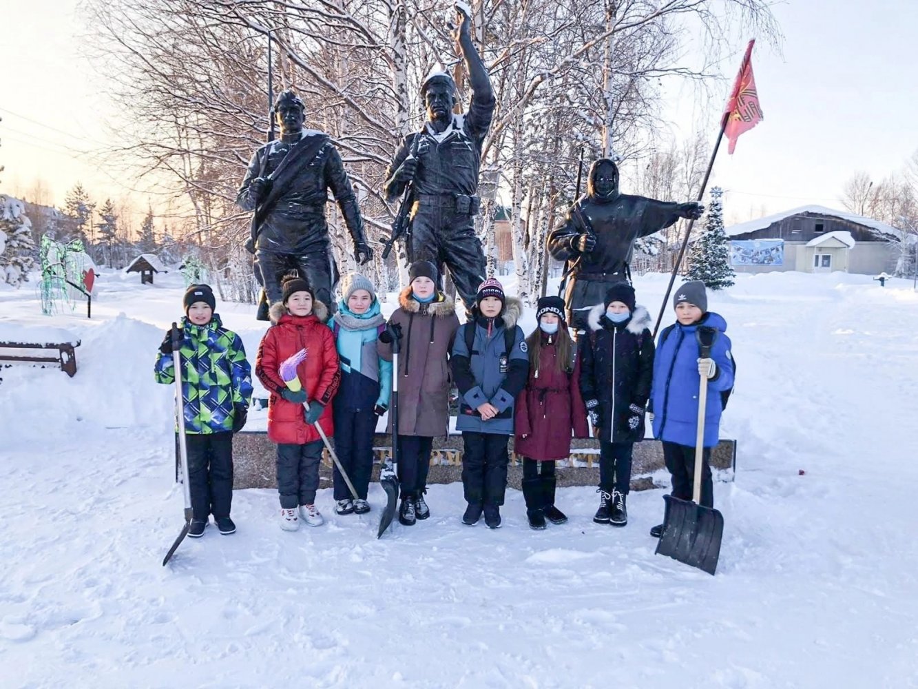В деревне Русскинская школьники вышли с лопатами и метлами во дворы школ и садиков, а также на очистку снега на участках рядом с памятниками и мемориалами. Как пишет соцсетях глава Сургутского района, акция эта исключительно добровольная: вот уже на протяжении нескольких лет каждую зиму школьники разных поселений выходят в свободное время чистить от снега памятники и территории школ. В ней принимают участие целые классы или отдельные группы ребят.