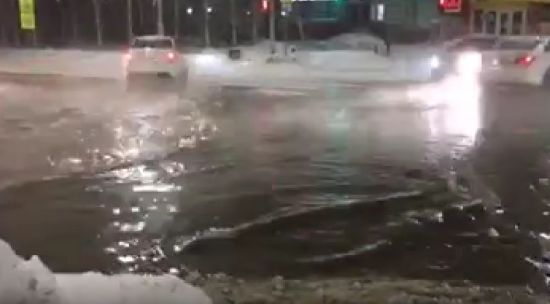 Из-за порыва теплотрассы вечером 7 января затопило несколько центральных улиц