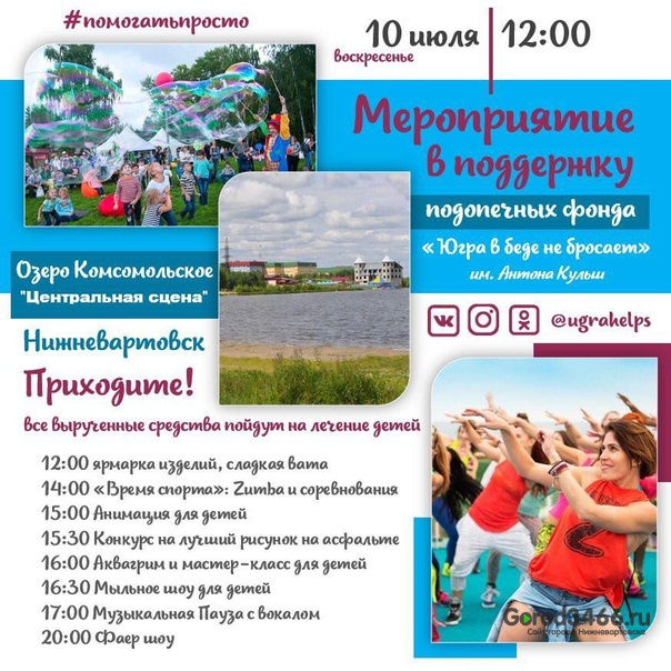 10 июля на территории озера Комсомольское в Нижневартовске будет проходить благотворительный праздник в поддержку подопечных фонда «Югра в беде не бросает».