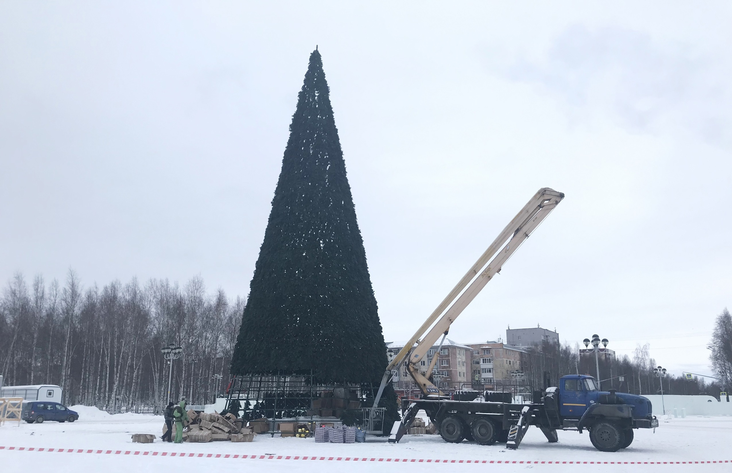 В Нижневартовске установили новогоднюю 22-метровую ель