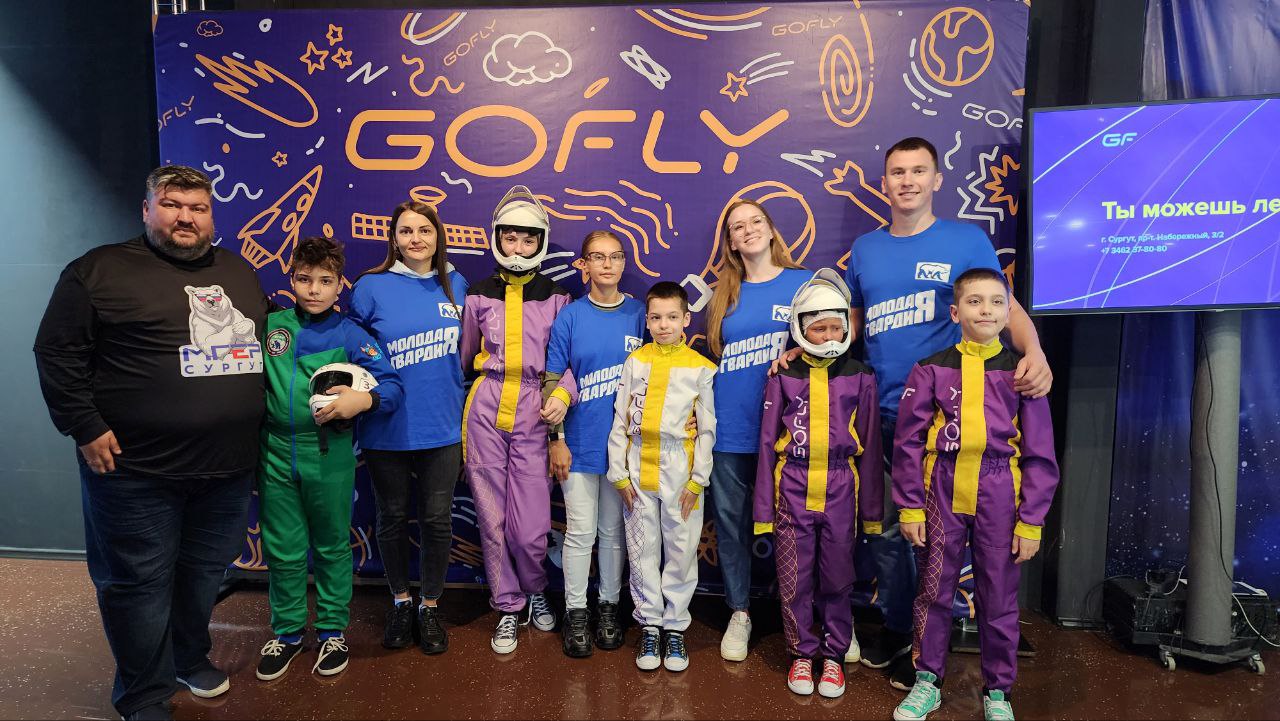 В День физкультурника активисты «Молодой Гвардии» Сургута организовали для детей из Донбасса, приехавших на летние каникулы, полет в аэротрубе.