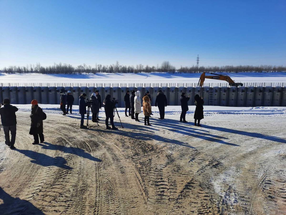Отметим, протяжённость строящейся набережной превышает 1,5 километра. На данный момент на объекте погружено 510 трубошпунтов общей протяжённостью 428 метров, ведутся работы по устройству армирующей сетки для заливки оголовка бетоном.