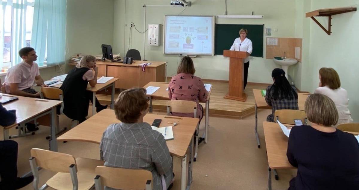 В рамках Всероссийской просветительской акции «Учитель - учителю» Российского общества «Знание» руководитель фракции «Единая Россия» в Думе Октябрьского района Оксана Гончарук встретилась с педагогическим коллективом Окт