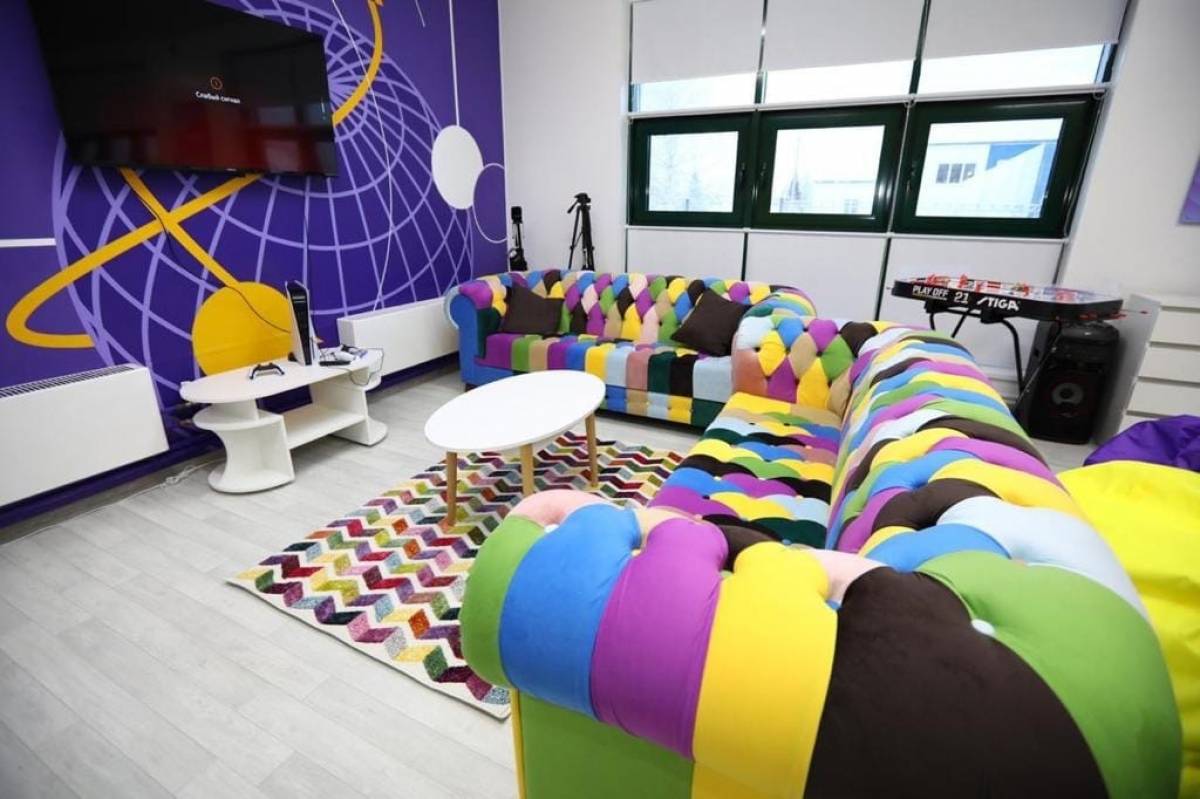 Пространства разделены на три зоны. В коворкинге расположились настольные игры, кинопроекторы, аэрохоккей и футбол. В киберзоне установлены игровые компьютеры с наушниками и VR-гарнитурой. Медиазона оборудована телевизорами, акустической системой, микрофонами, интерактивной доской, студийным светом и веб-камерой.