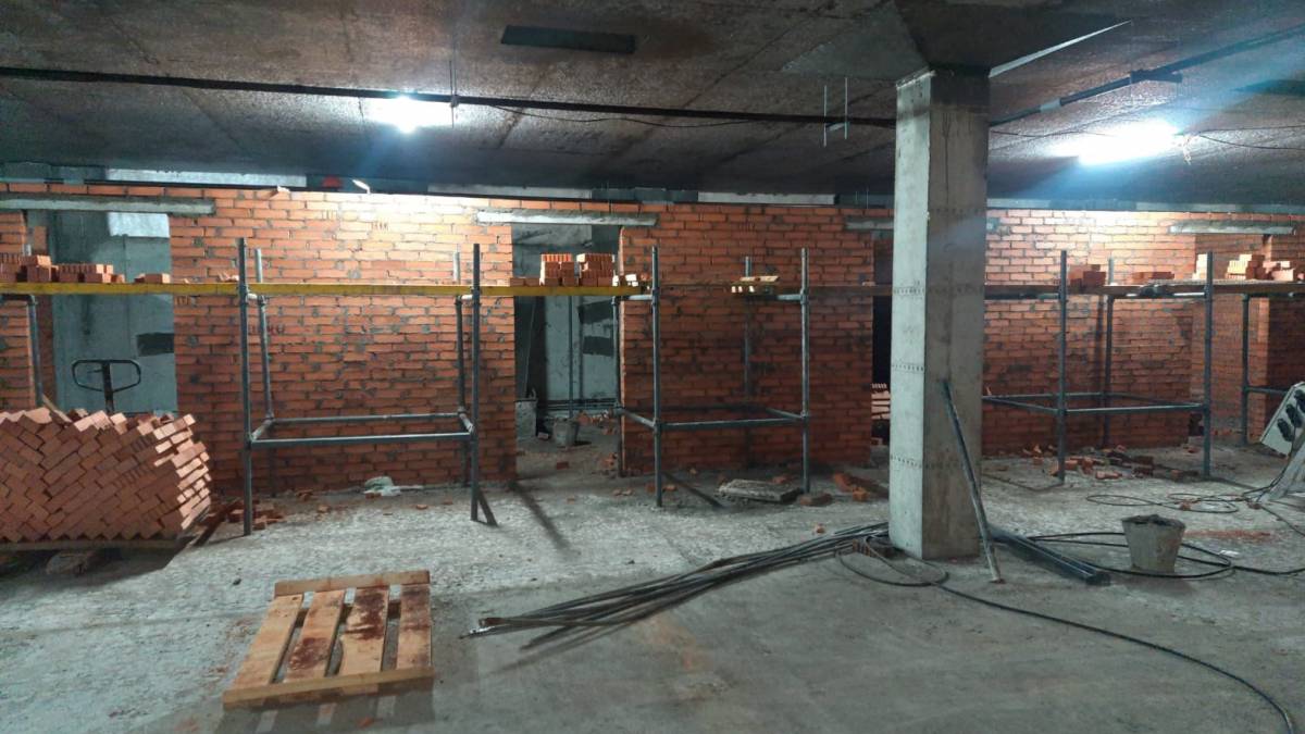 Работы на объекте стартовали в апреле. В настоящее время завершено возведение второго этажа здания, выполняется кладка внутренних и наружных стен, монтаж инженерных систем.