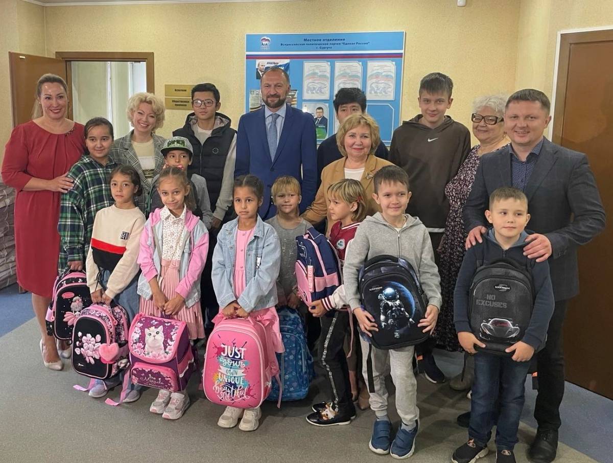 В Сургуте активисты, депутаты и сторонники партии передали школьникам 200 рюкзаков с тетрадями, ручками, карандашами, альбомами и фломастерами.