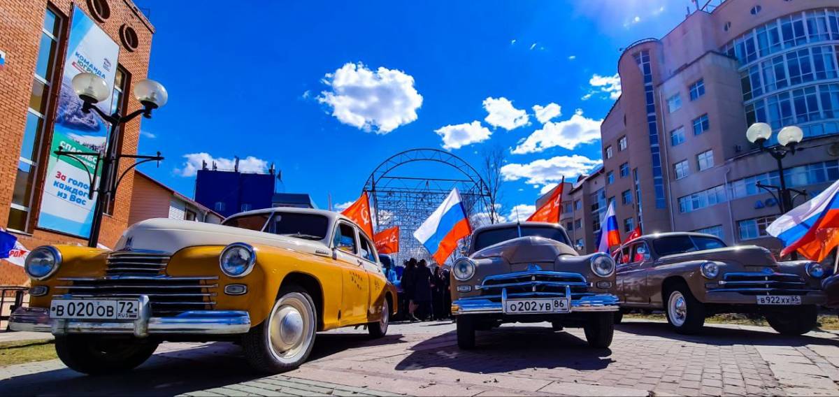 Единороссы из медиаэкспедиции «Победа одна на всех!» приехали к зданию регионального отделения Партии в Ханты-Мансийске на автомобилях ГАЗ М-20 «Победа», чтобы принять участие во «Фронтовом привале» «Сегодня мы, «победаводы»,