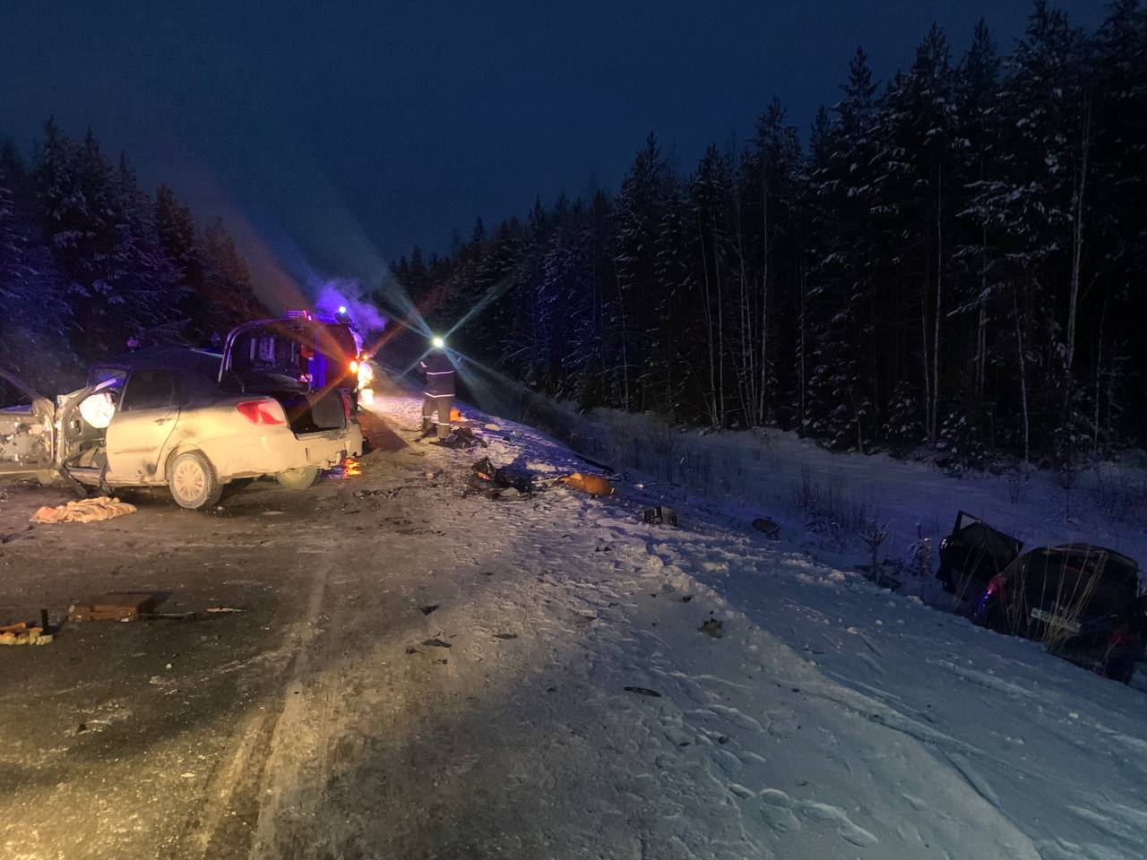 По данным управления, примерно в 16:30 на 413 километре дороги «Югра» столкнулись два автомобиля — Kia Ceed и Datsun. В первой машине погиб один пассажир, во второй — трое. Оба водителя получили травмы разной степени тяжести.