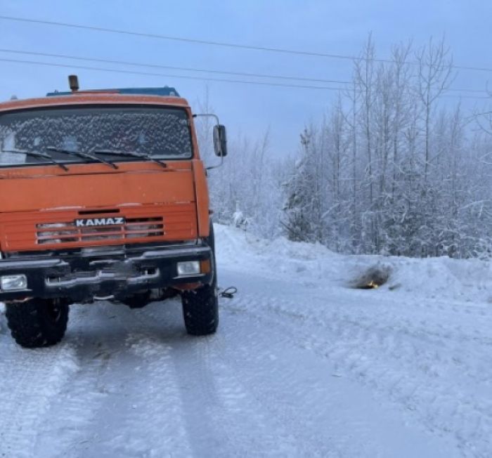Инспекторы ДПС по Октябрьскому району на маршруте патрулирования на 53 км автодороги «Нягань – Талинка» помогли замерзающему водителю «КамАЗ».