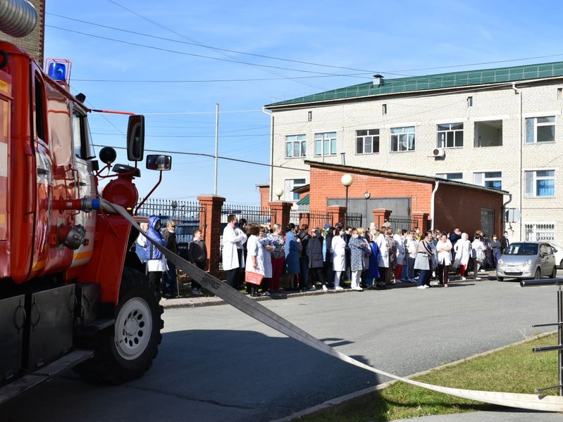 В ходе мероприятия была проверена готовность администрации и медперсонала больницы при возникновении пожара, проведена тренировка личного состава пожарной части по ликвидации пожаров и их последствий в медицинском учреждении.