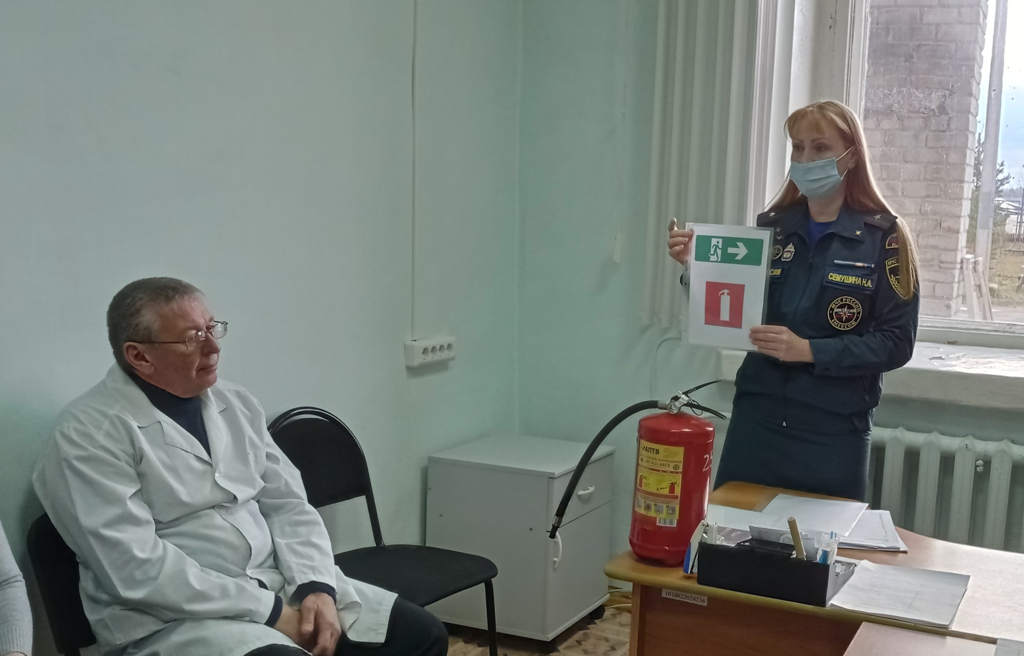 От пожарной безопасности в общественном здании сотрудники ведомства перешли к жилому сектору. Озвучив статистику пожаров в районе за последние два года, медикам рассказали о причинах данных возгораний и об административной ответственности виновников пожаров. «С наступлением холодов увеличивается риск возникновения возгораний от печного отопления и электрооборудования, поэтому мы советуем при выборе электрообогревателей, обращать особое внимание на технические показатели приобретаемого прибора, такие как наличие термозащиты, соответствие мощности прибора и допустимой нагрузки электросети жилища», - рассказывает Наталья Семушина. Кроме того, работникам больницы рекомендовали провести в обязательном порядке осмотр печного отопления и при наличии прогаров или трещин незамедлительно устранить их. Еще раз напомнили номера пожарной охраны 01,101 и 112, вручив всем желающим тематические памятки и буклеты.
