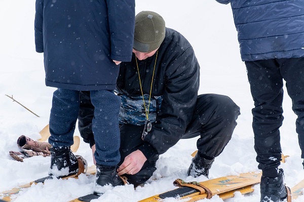 В сопровождении сотрудников специального подразделения ребята ознакомились с устройством охотничьих лыж, правилами и техникой преодоления препятствий и сугробов.