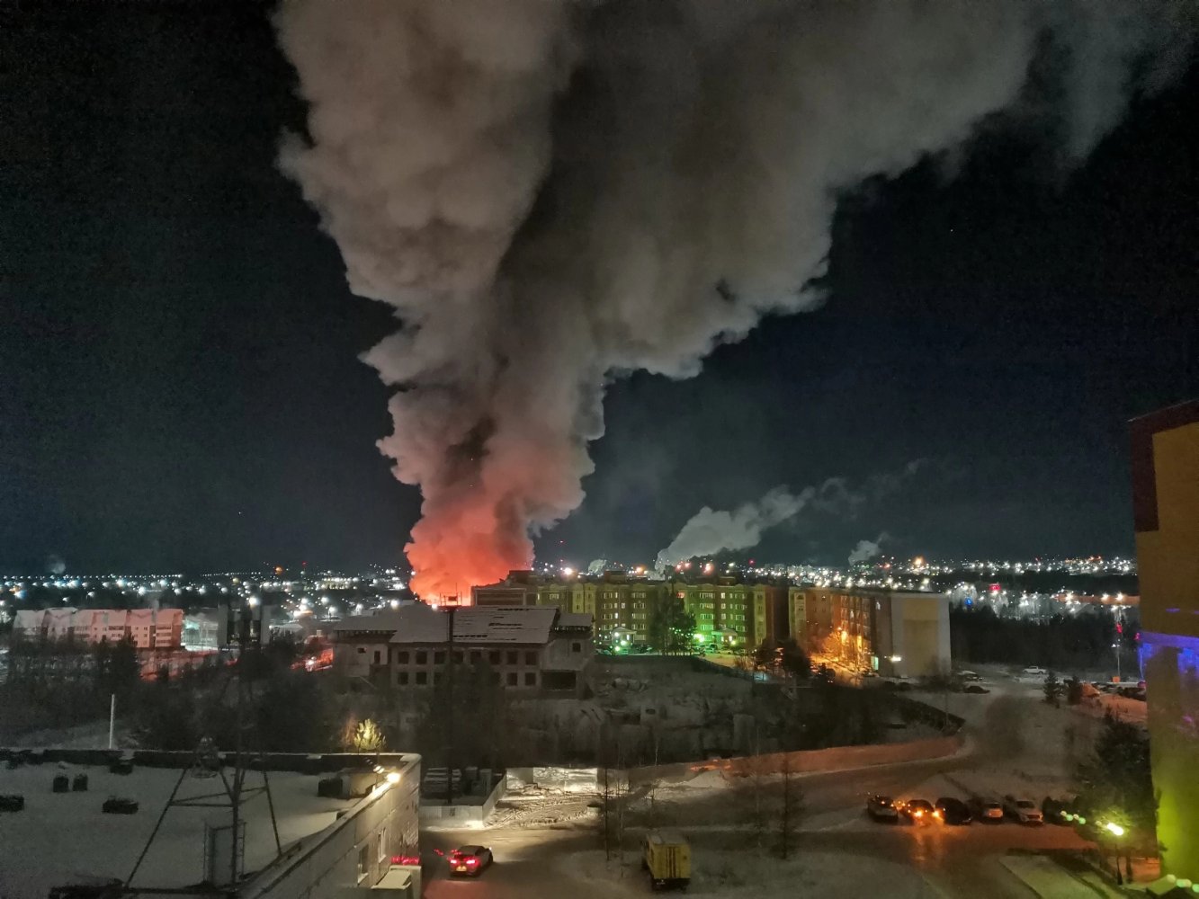Рано утром 28 ноября в Нягани загорелся трехэтажный гараж в четвёртом микрорайоне.