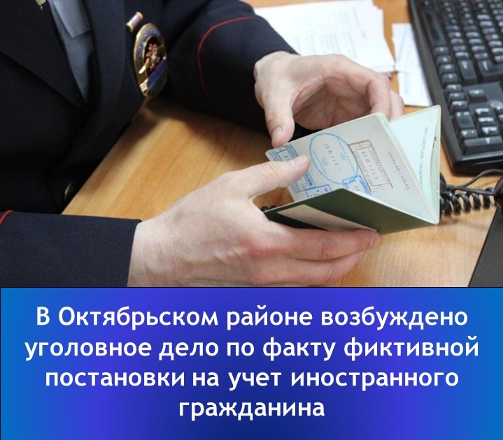Так, накануне в ходе работы сотрудники ОМВД России по Октябрьскому району выявили факт фиктивной постановки на учет иностранного гражданина.