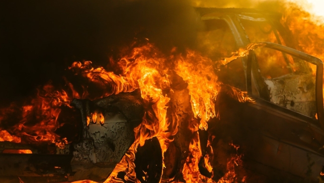 В Югре на трассе произошел пожар после столкновения автомобилей