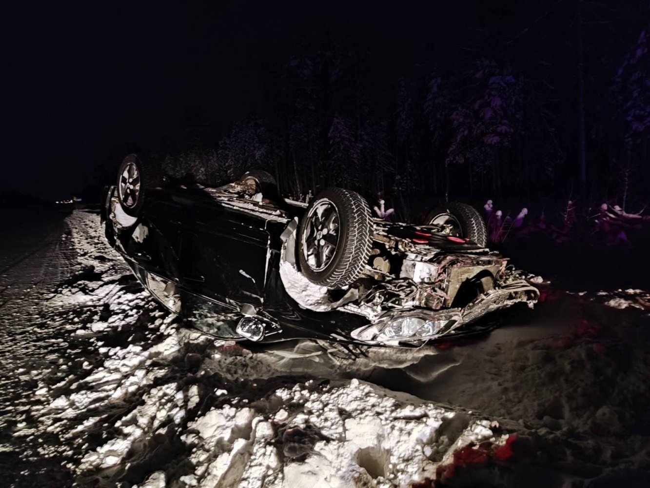 В Югре только чудо спасло водителя перевернувшейся машины