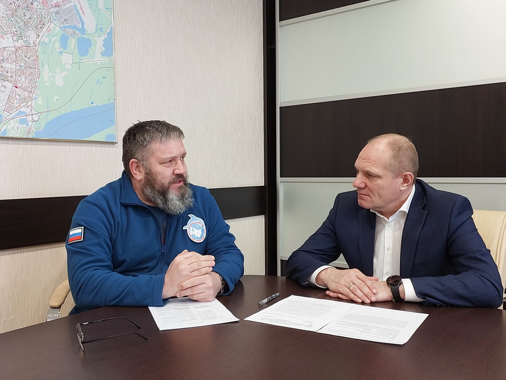 Депутат Думы Югры Александр Колодич встретился с руководителем Ресурсного центра содействия добровольчеству (волонтерству) и гражданским инициативам «Сердце Югры» Сергеем Котляром.