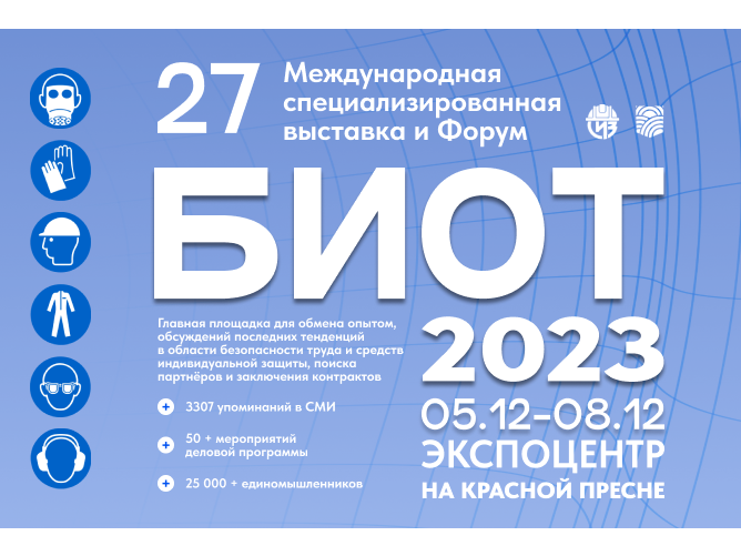 «Ассоциация «СИЗ» при поддержке Министерства труда и социальной защиты Российской Федерации в период с 05 по 08 декабря 2023 года на территории ЦВК «Экспоцентр» города Москвы проведет 27-ую специализированную выставку «Б