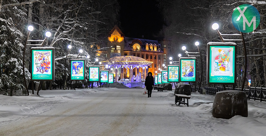 Центральную площадь Ханты-Мансийска украсили новогодние открытки