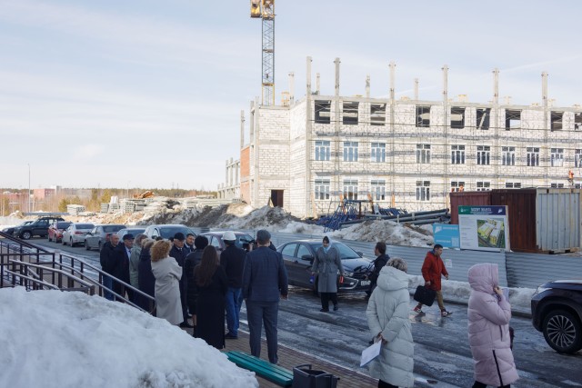 У будущего образовательного учреждения уже вырисовывается четвёртый, последний этаж. К стройке подъезжают долгожданные гости – делегация районных депутатов. Останавливаются возле строящегося здания – на сам объект не идут. Возможно, всё дело в костюмах, которые они не хотят испачкать, подумала я. Но один из народных избранников Сергей Юдин развенчал моё предположение: «Небезопасно это. Кирпич может на голову упасть. Касок-то у нас нет».