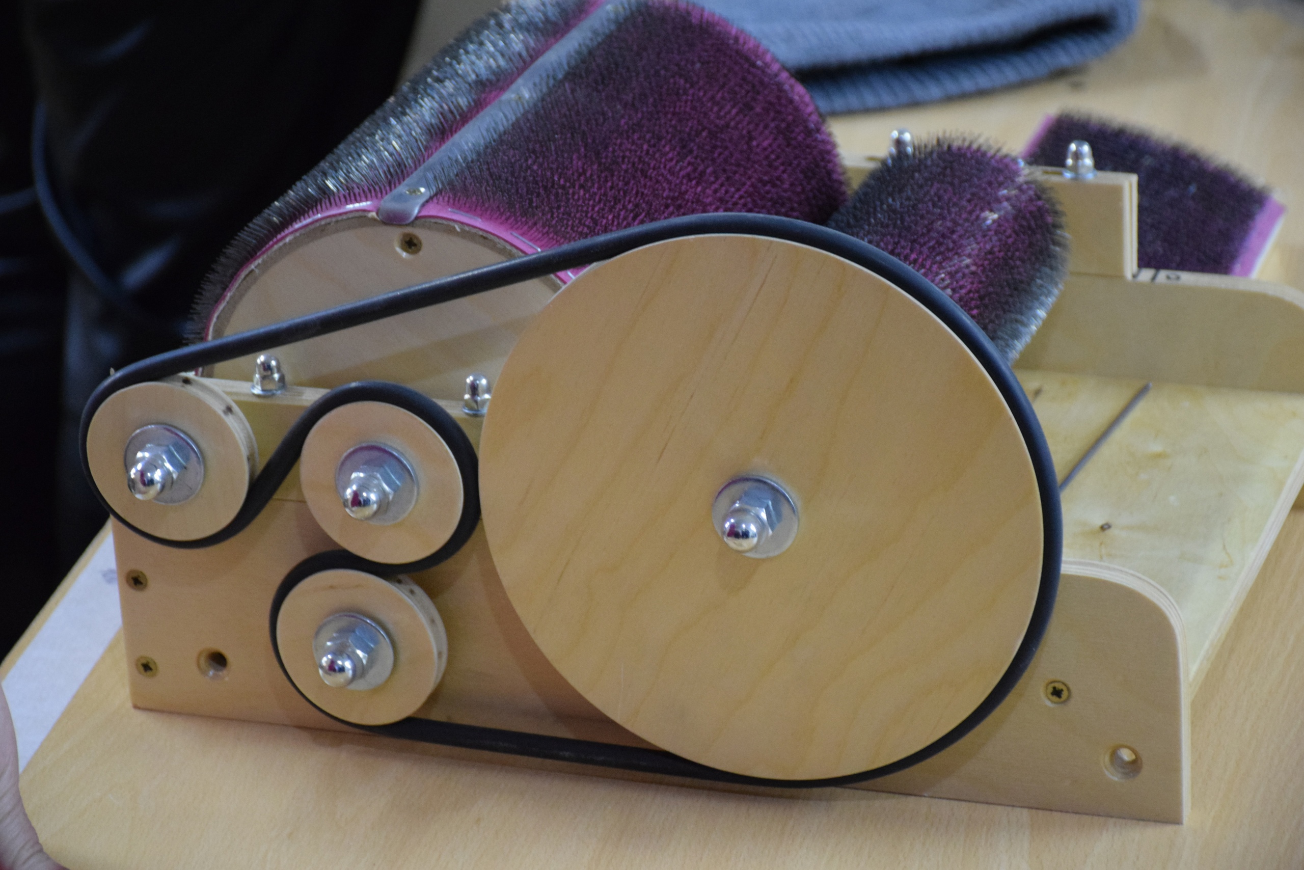 У волонтеров появились новые помощники - барабанный кардер и чесалка для шерсти.