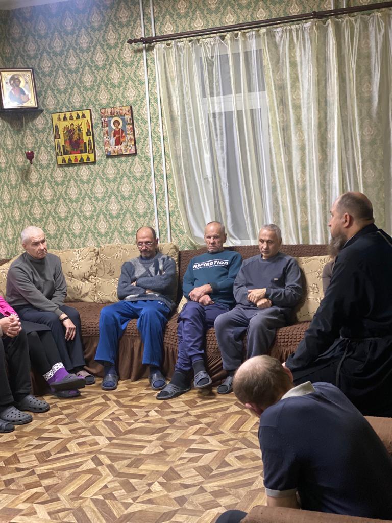 20 октября 2022 г. иерей Тарасий Борозенец, клирик Знаменского храма, провел беседу с насельниками и гостями центра, посвящённую Таинству Крещения и связанных с ним вопросам духовной жизни.