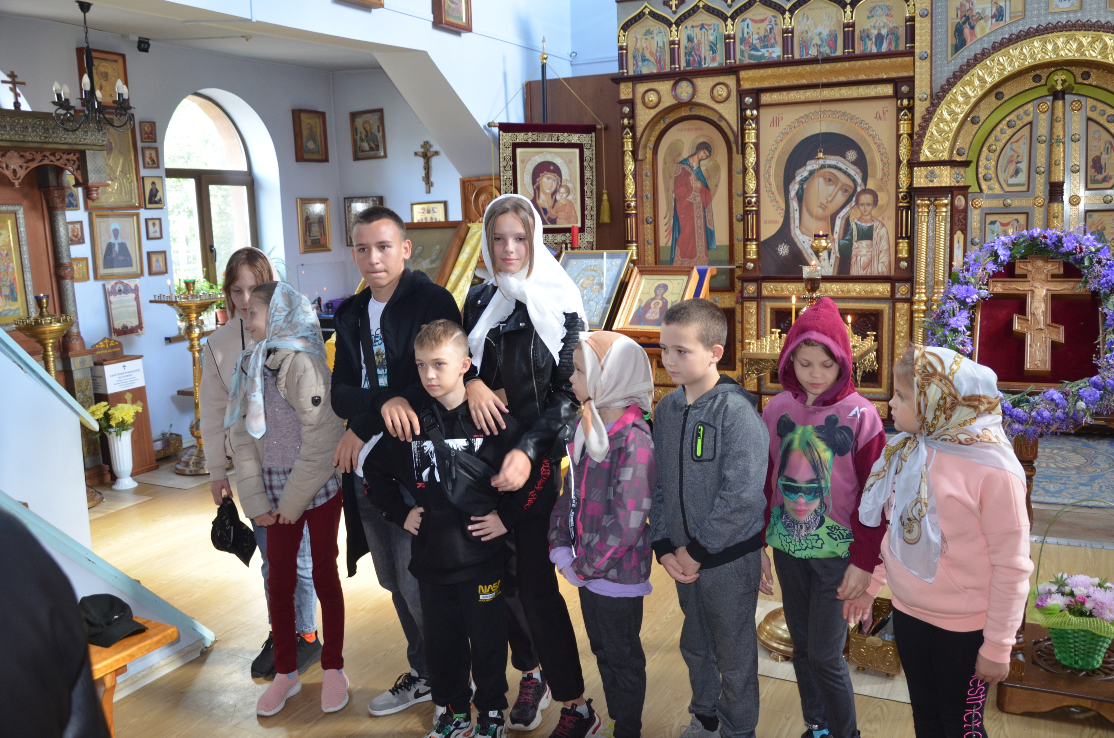 Приехавшие в город Ханты-Мансийск на отдых дети из города Макеевки Донецкой Народной Республики, двумя группами по 25 человек, 15 августа посетили храм в честь иконы Божией Матери «Знамение».