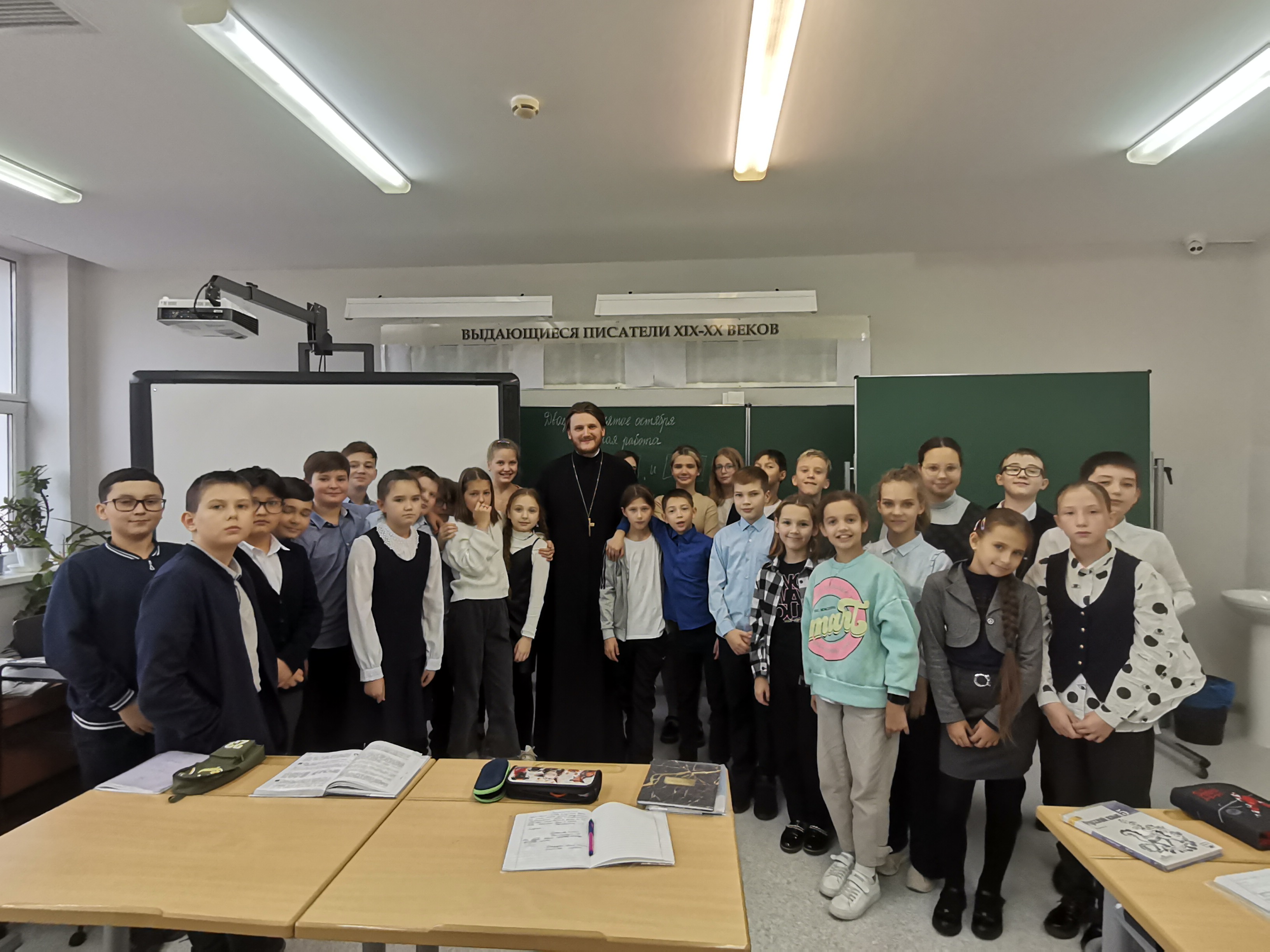 26 октября ключарь Воскресенского Собора встретился с учащимися 5 класса школы №4 г. Ханты-Мансийска.