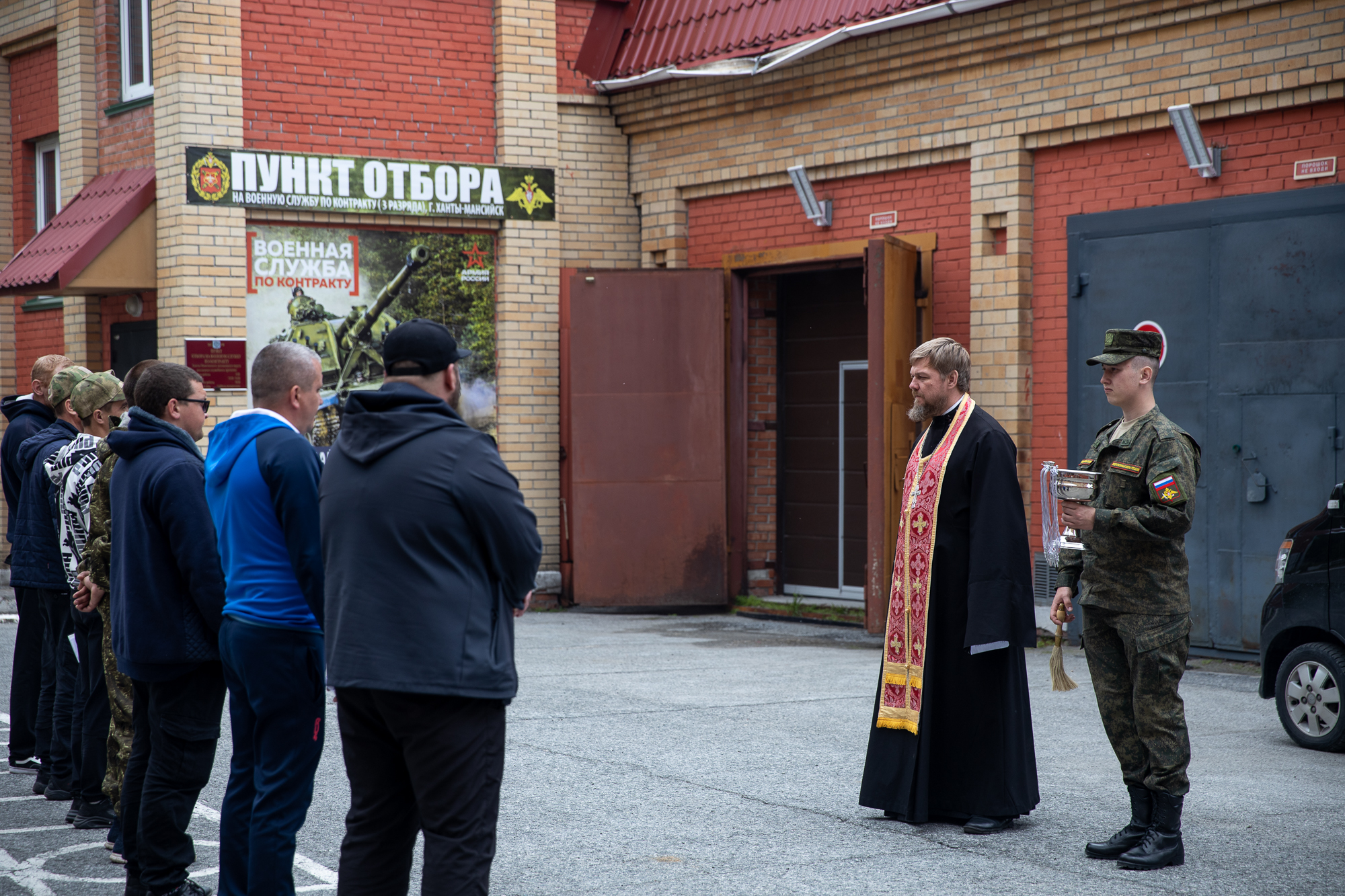 Войны были окроплены Святой водой им вручены иконы, нательные кресты и пояс с 90 псалмом.